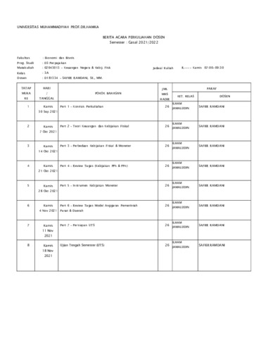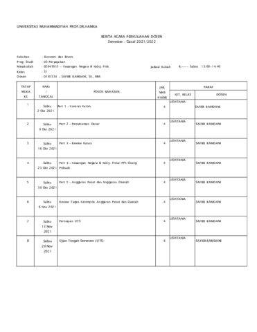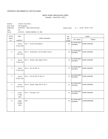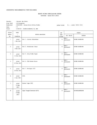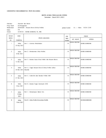 Safier Ramdani, Safier Daftar Pengajaran BKD Ganjil 2021 2022. Uhamka.