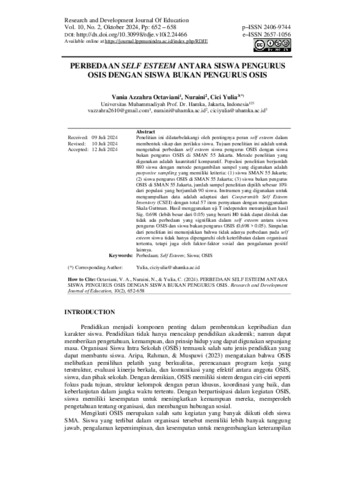 Nuraini, Nuraini (2024) Perbedaan Self Esteem antara Siswa Pengurus OSIS dengan Siswa bukan Pengurus OSIS. Perbedaan Self Esteem antara Siswa Pengurus OSIS dengan Siswa bukan Pengurus OSIS, 10 (2). pp. 652-658. ISSN 2657-1056