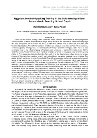 EgyptianAmmiyahSpeakingTraining intheMuhammadiyahDarul ArqomIslamic Boarding School, Depok.pdf Download (675kB) | Preview |