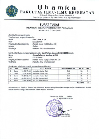 Nursyifa Rahma, Maulida Bukti kinerja Pengajaran PSG 2021/2022. Uhamka. (Submitted)