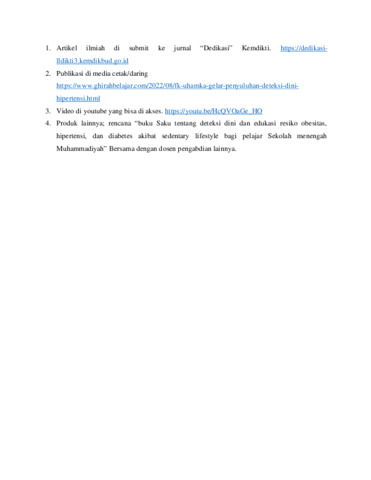 Dewi Jantika Djuarna, Dewi DETEKSI DINI HIPERTENSI PADA SISWA-SISWI SEKOLAH MENENGAH ATAS MUHAMMADIYAH 3 JAKARTA SELATAN. Fakultas Kedokteran Uhamka.