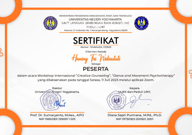 Tri Widiastuti, Haning dan Tri Widiastuti, Haning dan WIdiastuti, Haning Tri Seminar Internasional Gabung. ULBK UNY. (Unpublished)