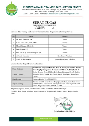 Siregar, Maruli PELATIHAN KOMPETENSI PENYELIA HALAL & PENERAPAN STANDAR HALAL. Fikes UHAMKA. (Unpublished)