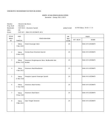 legowati, diah ayu Daftar hadir, daftar nilai, BAP Akuntansi Syariah. Universitas Muhammadiyah Prof. Dr. Hamka. (Unpublished)