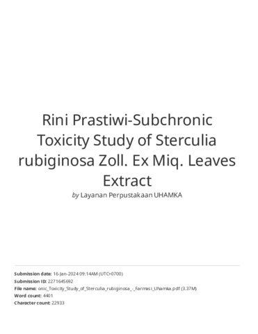 Turnitin_Rini Prastiwi-Subchronic Toxicity Study of Sterculia rubiginosa Zoll. Ex Miq. Leaves Extract.pdf Download (5MB) | Preview |