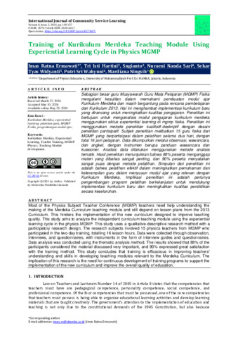 Imas Ratna Ermawati, IRE ARTIKEL PENGABDIAN_Training of Kurikulum Merdeka Teaching Module Using Experiential Learning Cycle in Physics MGMP. uhamka. (Unpublished)