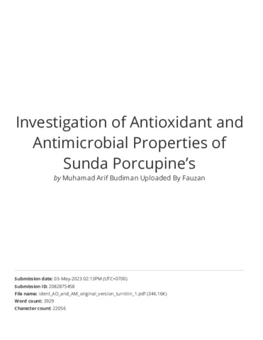 Investigation of Antioxidant and Antimicrobial Properties of Sunda Porcupine’s.pdf Download (3MB) | Preview |