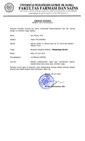 Nining, Nining Peserta kegiatan " Webinar metodologi series". FFS UHAMKA. (Unpublished)