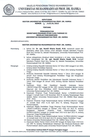 70 SK PENGANGKATAN SEKRETARIS KETUA PROGRAM STUDI ILMU FARMASI S2 an NUMLIL KHAIRA RUSDI(2).pdf Download (1MB) | Preview |