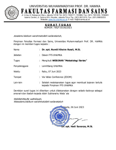 Numlil Khaira Rusdi, Numlil penunjang. uhamka. (Unpublished)