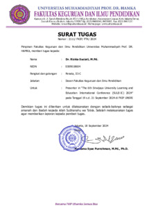 Suciati, Rizkia Presenter in “The 6th Sriwijaya University Learning and Education International Conference (SULE-IC) 2024” pada Tanggal 19 s.d. 21 September 2024. In: The 6th Sriwijaya University Learning and Education International Conference (SULE-IC) 2024. (Unpublished)
