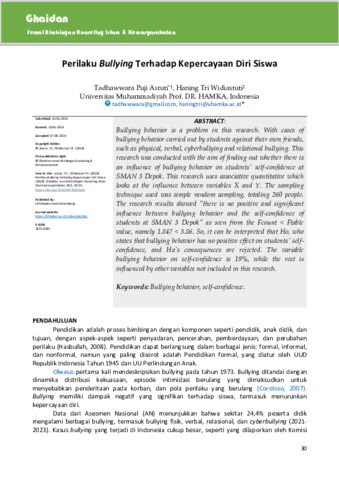 Tri Widiastuti, Haning Perilaku Bullying Terhadap Kepercayaan Diri Siswa. Ghaidan: Jurnal Bimbingan Konseling Islam dan Kemasyarakatan.