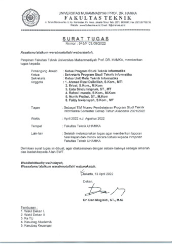Hasan, Firman Noor (2022) Penugasan & Panitia - Semester Genap TA.2021/2022. Universitas Muhammadiyah Prof. Dr. Hamka.