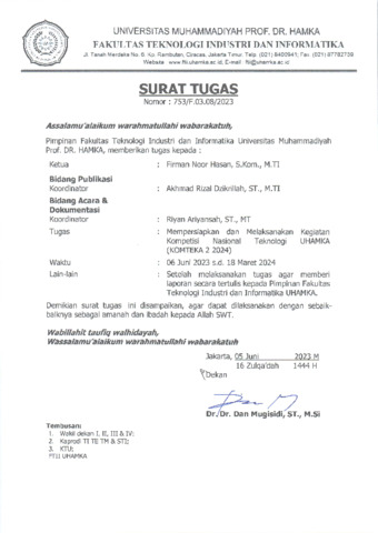 Hasan, Firman Noor (2023) Penugasan & Panitia - Semester Genap TA.2022/2023. Universitas Muhammadiyah Prof. Dr. Hamka.