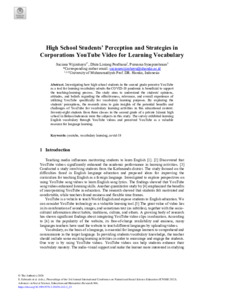 Wijirahayu, Suciana dan Perdhana, Dhita Lintang dan Syae Purrohman, Purnama (2024) High School Students’ Perception and Strategies in Corporations YouTube Video for Learning Vocabulary. Proceedings of the 3nd Annual International Conference on Natural and Social Science Education (ICNSSE 2023), 846. pp. 224-246. ISSN 2352-5398