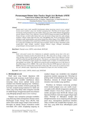pinardi, sofia (2024) Perancangan Sistem Solar Tracker Single-Axis Berbasis ANFIS. seminar nasional teknoka, 9. pp. 50-58. ISSN 2502-8782