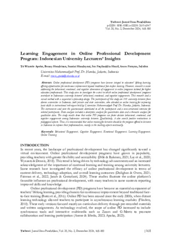 Isa Faqihuddin Hanif, Isa Learning Engagement in Online Professional Development Program: Indonesian University Lecturers’ Insights. Learning Engagement in Online Professional Development Program: Indonesian University Lecturers’ Insights.