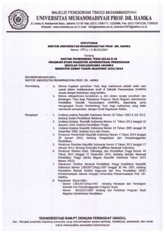 Rismita, Rismita (2024) Pembimbing Utama Tesis Ari Setyowati. Masters thesis, Universitas Muhammadiyah Prof. DR. HAMKA.