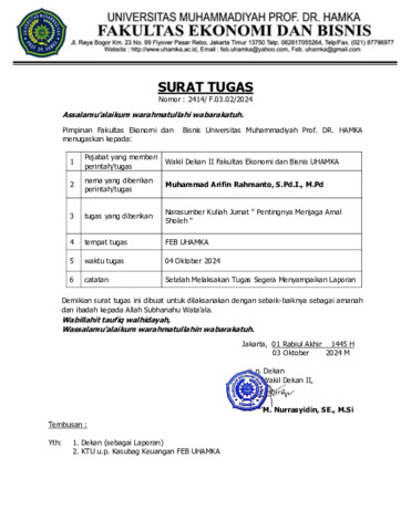 rahmanto, arifin Kumpulan Khutbah jumat (surat tugas dan sertifikat). Uhamka.