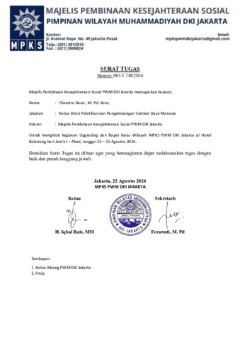 Chandra Dewi S., CDS Surat Tugas dan Sertifikat Narsum Upgrading MPKS PWM DKI Jakarta - Gasal 2024. Majelis MPKS PWM DKI Jakarta. (Unpublished)