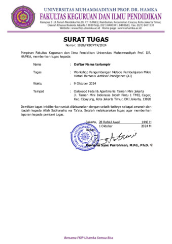 Surat Tugas - Dr. Rizkia Suciati M.Pd. - Mikro AI.pdf Download (1MB) | Preview |