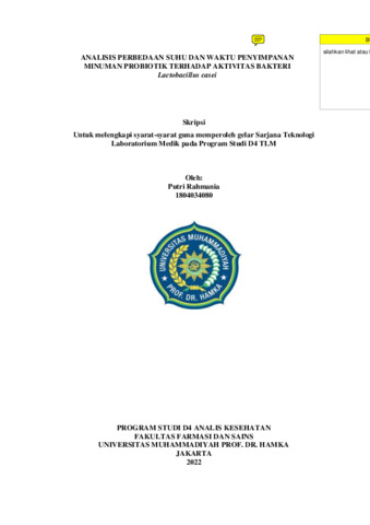 Putri, Rahmania dan Rindita, Rindita dan Hayati, hayati (2022) ANALISIS PERBEDAAN SUHU DAN WAKTU PENYIMPANAN MINUMAN PROBIOTIK TERHADAP AKTIVITAS BAKTERI Lactobacillus casei. Bachelor thesis, UNIVERSITAS MUHAMMADIYAH PROF. DR. HAMKA.