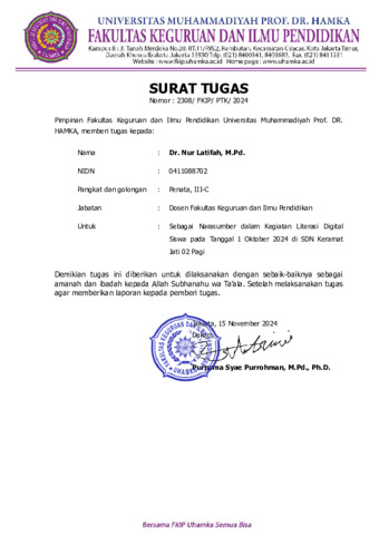 Latifah, Nur Surat Tugas dan Sertifikat Narasumber "Literasi Digital siswa di SD Keramat Jati 02 Pagi". Universitas Muhammadiyah Prof. Dr. HAMKA. (Unpublished)
