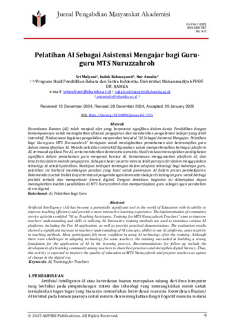 Nur Amalia, Nur ARTIKEL PENGABDIAN MASYARAKAT DI MTS Nuruzzahroh. Pelatihan AI Sebagai Asistensi Mengajar bagi Guru�guru MTS Nuruzzahroh.