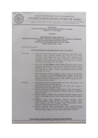 Eko Digdoyo, Eko SK WADEK III FISIP. UNIVERSITAS MUHAMMADIYAH PROF. DR. HAMKA. (Unpublished)