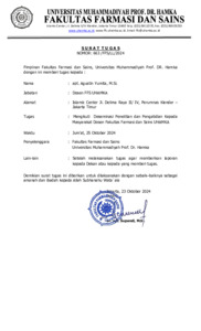 Agustin Yumita, Agustin (2024) Surat Tugas dan Sertifikat Deseminasi Penelitian dan Pengabdian Kepada Masyarakat Dosen Fakultas Farmasi dan Sains UHAMKA. Uhamka. (Unpublished)