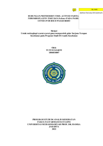 Tuti, Sugiarti dan Iis, Afriayani dan Sri, Wahyuni Handayani (2022) HUBUNGAN PROTROMBIN TIME, ACTIVED PARTIAL THROMBOPLASTIN TIME DAN D-dimer PADA PASIEN COVID-19 DI RSUD PASAR REBO. Bachelor thesis, UNIVERSITAS MUHAMMADIYAH PROF. DR. HAMKA.