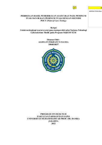 Alifia, Futikhatun Fauzia dan Meri, Suzana dan Adia, Petra Wirman (2022) PERBEDAAN HASIL PEMERIKSAAN ASAM URAT PADA PEMINUM TUAK DAN BUKAN PEMINUM TUAK DENGAN METODE POCT (Point of Care Testing). Bachelor thesis, UNIVERSITAS MUHAMMADIYAH PROF. DR. HAMKA.