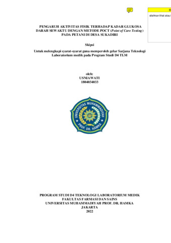 Usniawat, Usniawat dan Meri, Suzana dan Adia, Putra Wirman (2022) PENGARUH AKTIVITAS FISIK TERHADAP KADAR GLUKOSA DARAH SEWAKTU DENGAN METODE POCT (Point of Care Testing) PADA PETANI DI DESA SUKADIRI. Bachelor thesis, UNIVERSITAS MUHAMMADIYAH PROF. DR. HAMKA.