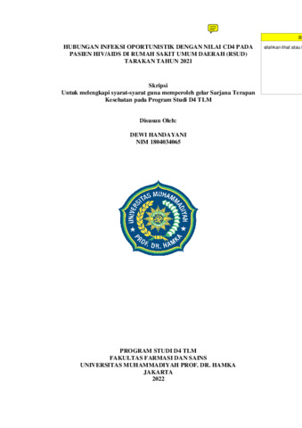 Dewi, Handayani dan Herlina, Herlina dan Iis, Afriayani (2022) HUBUNGAN INFEKSI OPORTUNISTIK DENGAN NILAI CD4 PADA PASIEN HIV/AIDS DI RUMAH SAKIT UMUM DAERAH (RSUD) TARAKAN TAHUN 2021. Bachelor thesis, UNIVERSITAS MUHAMMADIYAH PROF. DR. HAMKA.