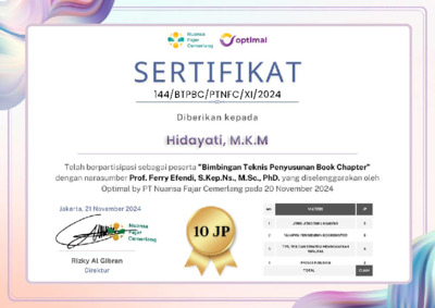 2024. Sertifikat Peserta Bimtek Penyusunan Book Chapter - Hidayati Nov 24.pdf Download (156kB) | Preview |