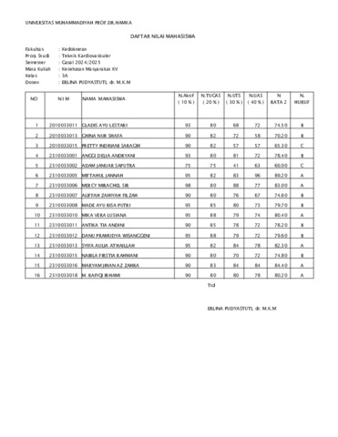 Erlina Pudyastuti, Erlina (2024) Daftar Nilai Kesmas KV TA 2024-2025. Universitas Muhammadiyah Prof. DR. HAMKA. (Unpublished)
