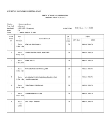 Amilia Zainita, amilia SK Mengajar,BAP, Daftar Hadir, Nilai Matakuliah Manajemen 3A. Universitas Muhammadiyah Prof. Dr. Hamka. (Unpublished)