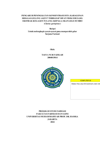 Kata Kunci: Kolagen, emulgel, ekstrak kolagen tulang kepala ikan lele dumbo (Clarias gariepinus), iota karagenan, sifat fisik.