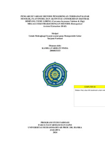 KAMILA, FARHATUNNISA dan Agustin, Yumita dan Ni Putu, Ermi Hikmawati (2024) PENGARUH VARIASI METODE PENGERINGAN TERHADAP KADAR FENOLIK, FLAVONOID, DAN AKTIVITAS ANTIOKSIDAN EKSTRAK RIMPANG TEMU GIRING (Curcuma heyneana Valeton & Zipj) MELALUI EKSTRAKSI DENGAN METODE Homogenizer Assisted Extraction (HAE). Bachelor thesis, UNIVERSITAS MUHAMMADIYAH PROF. DR. HAMKA.