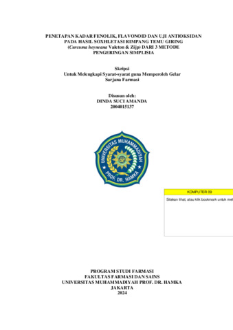 Dinda, Suci Amanda dan Agustin, Yumita dan Endang, Hanani (2024) PENETAPAN KADAR FENOLIK, FLAVONOID DAN UJI ANTIOKSIDAN PADA HASIL SOXHLETASI RIMPANG TEMU GIRING (Curcuma heyneana Valeton & Zijp) DARI 3 METODE PENGERINGAN SIMPLISIA. Bachelor thesis, UNIVERSITAS MUHAMMADIYAH PROF. DR. HAMKA.