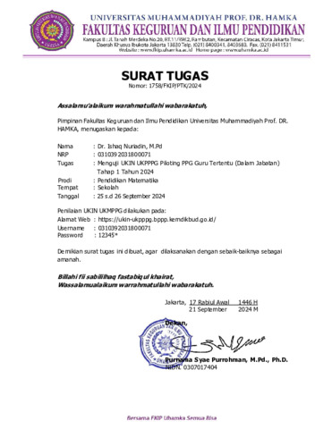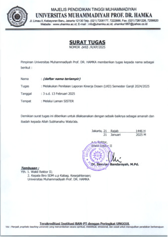 Surat Tugas Asesor Penilaian BKD UHAMKA Gasal 2024-2025.pdf Download (1MB) | Preview |