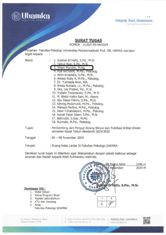 Ilham Mundzir, Ilham mundzir Penguji Skripsi. Uhamka. (Unpublished)