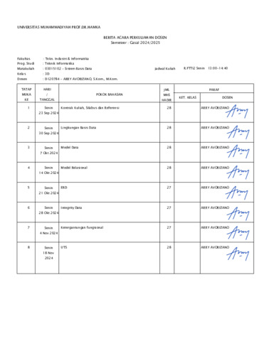 Avorizano, Arry BAP Hadir Nilai Sistem Basis Data 3D. UHAMKA. (Unpublished)