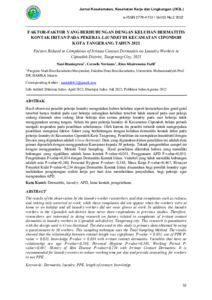 Khairunnisa, Rina Faktor-faktor yang Berhubungan dengan Keluhan Dermatitis KOntak Iritan Pada Pekerja Laundry Di kecamatan Cipondoh Kota Tangerang Tahun 2021. UHAMKA.