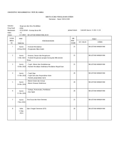 Handayani, Sri Lestari BAP, Presensi, Nilai KDI 1G Ganjil 2024-2025. Universitas Muhammadiyah Prof. Dr. Hamka. (Unpublished)
