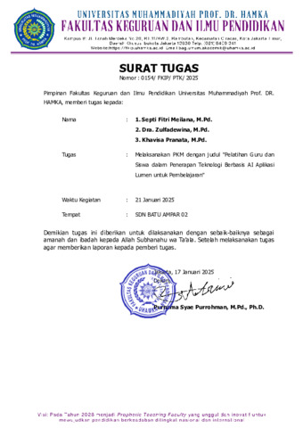Zulfadewina, Zulfadewina dan septi Fitri Meilana, UHAMKA dan Khavisa Pranata, Khavisa PELATIHAN GURU DAN SISWA DALAM PENERAPAN TEKNOLOGI BERBASIS AI APLIKASI LUMEN UNTUK PEMBELAJARAN. In: PELATIHAN GURU DAN SISWA DALAM PENERAPAN TEKNOLOGI BERBASIS AI APLIKASI LUMEN UNTUK PEMBELAJARAN, 21 Januari 2025, SMAN 5 Karawang. (Submitted)