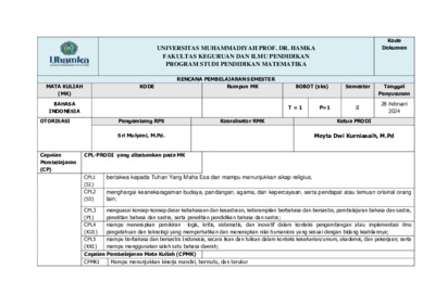 Mulyani, Sri Bahan Ajar Bahasa Indonesia. Universitas Muhammadiyah Prof. DR. HAMKA. (Unpublished)