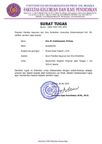 Rr., Sulistyawati ST dan Artikel Pengabdian Masyarakat. Universitas Muhammadiyah Prof. DR. HAMKA. (Unpublished)