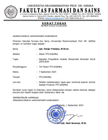 Fahjar Prisiska, Fahjar dan Dwitiyanti, Dwitiyanti SURAT TUGAS-LAPORAN-MATERI-PENGMAS 7 SEPTEMBER 2024 FAHJAR-DWITY. FFS UHAMKA. (Unpublished)