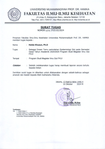 Khusun, Helda Undangan ST Dosen Tamu MK Epid S2 Gizi FKUI. FIKES UHAMKA. (Unpublished)
